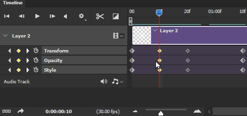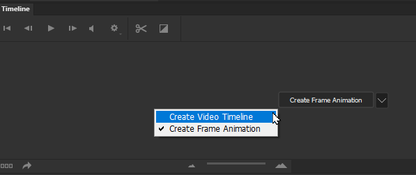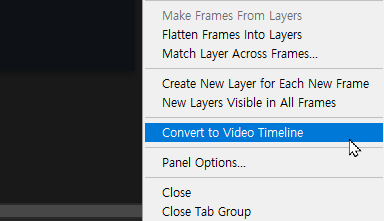 타임라인 패널 좌측하단 버튼을 클릭해서 비디오 타임라인으로 변경합니다.