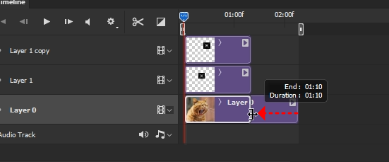 타임라인에서 각 레이어들의 길이를 맞춰줍니다.
