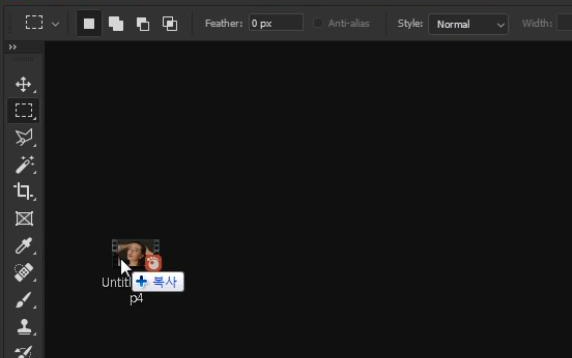 단축키 V, Move 툴 선택하고 만들어진 스마트 오브젝트를 드래그해서 넣을 배경 문서로 옮겨줍니다.