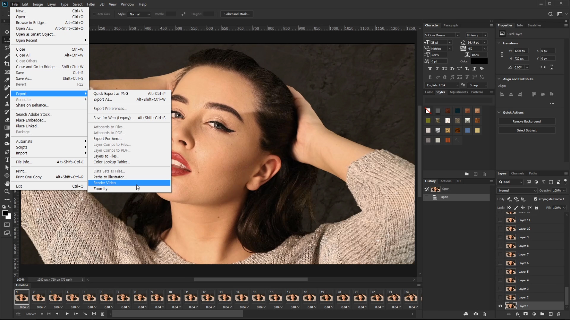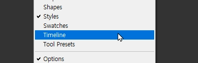 먼저, 넣을 이미지 파일을 열고 Window - Timeline 패널을 열어줍니다.