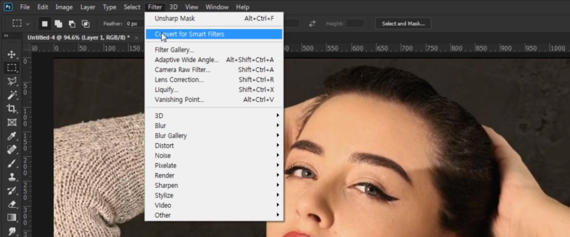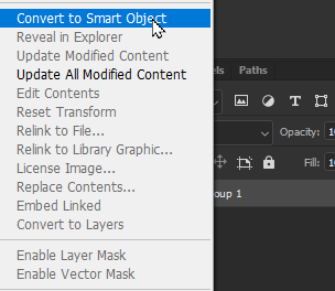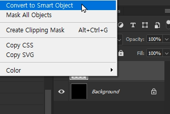 레이어에서 우클릭 후 Convert to Smart Object 선택해서 단일 스마트 오브젝트로 만듭니다.