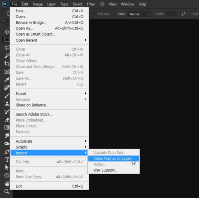 그대로 두고 Ctrl+O 해서 GIF 파일을 열어줍니다.